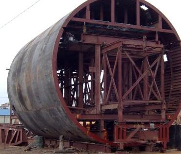 西安襯砌臺(tái)車主要用于中長隧道施工中,對(duì)施工進(jìn)度、砼表面質(zhì)量要求較高。此類襯砌臺(tái)車設(shè)計(jì)為整體鋼模板、液壓油缸脫立模,施工中靠絲桿千斤支撐,電動(dòng)減速機(jī)自動(dòng)行走或油缸步進(jìn)式自動(dòng)行走,全部采用砼輸送泵車灌注。大部分襯砌臺(tái)車為該類臺(tái)車。設(shè)計(jì)該類襯砌臺(tái)車時(shí),在滿足通過凈空要求的情況下,應(yīng)考慮門架內(nèi)側(cè)斜支撐下部安裝位置,盡可能靠近立柱下部,使之受力最好。門架橫梁應(yīng)足夠高,常規(guī)鐵路隧道不小于400mm,公路隧道不小于5500mm。模板端面與門架間的調(diào)整最小距離不小于250mm,否則將造成前后襯砌段搭接困難。